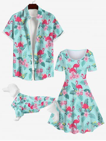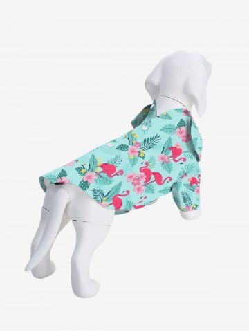 Dog Shirts > Pet's Turn-down Collar Flamingo Coconut Leaves Floral Print Hawaii Button Shirt