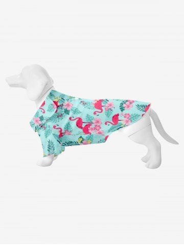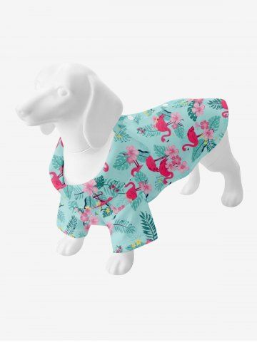 Pet's Turn-down Collar Flamingo Coconut Leaves Floral Print Hawaii Button Shirt - Green - Xl
