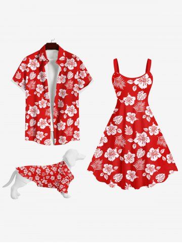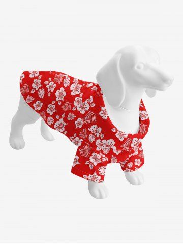 Pet's Turn-down Collar Flower Coconut Leaves Print Hawaii Button Shirt - Red - S