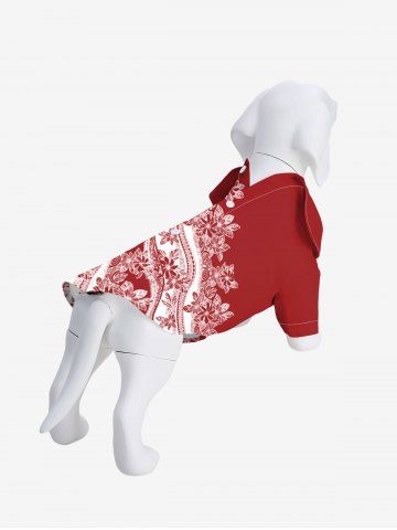 Pet's Turn-down Collar Flower Curve Line Print Hawaii Button Shirt - Red - 2xl
