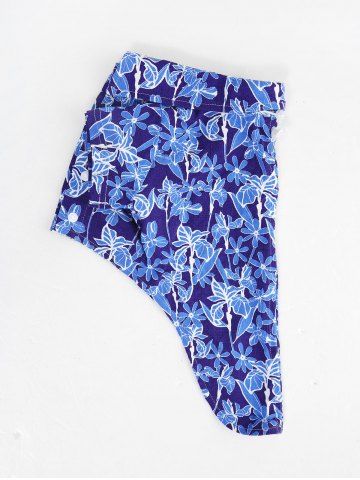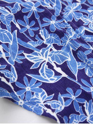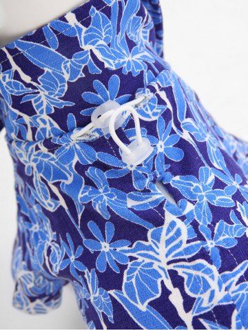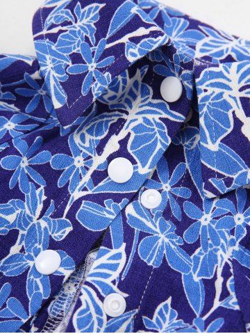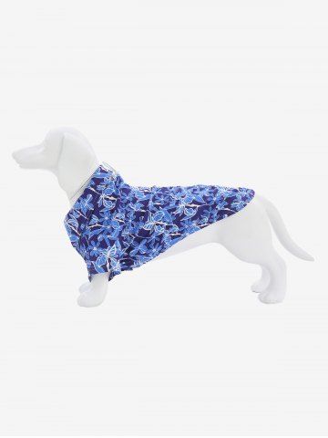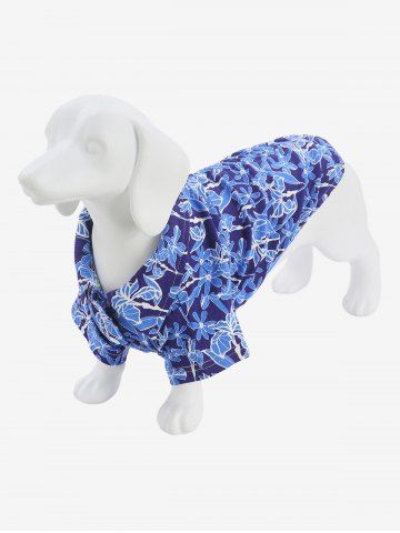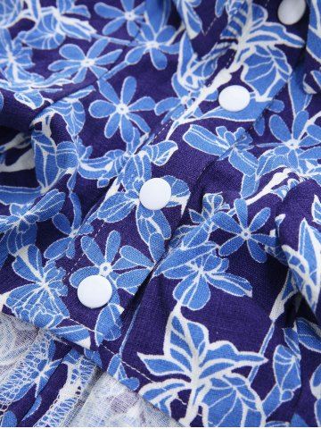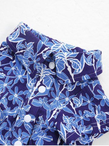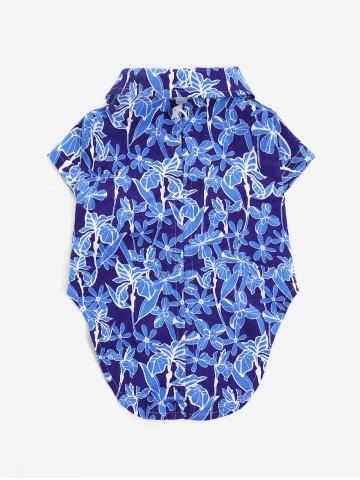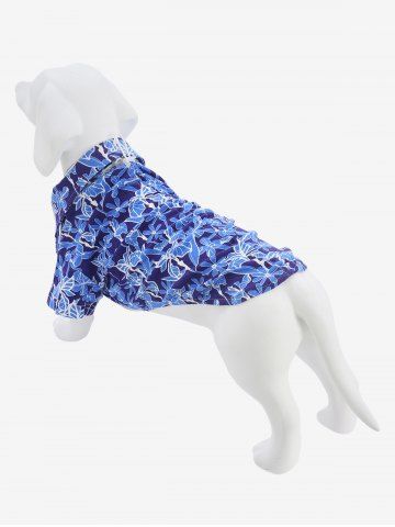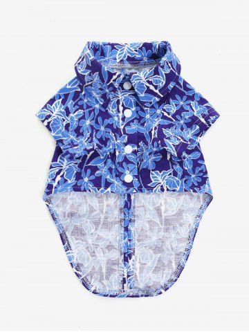 Pet's Turn-down Collar Flower Leaf Print Hawaii Button Shirt - Deep Blue - 3xl
