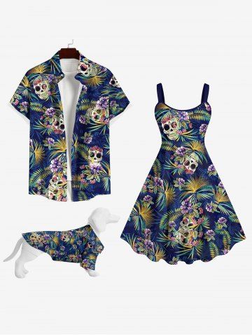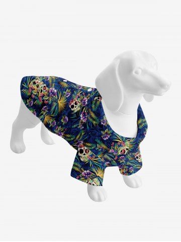 Dog Shirts > Pet's Turn-down Collar Skulls Coconut Leaves Floral Print Hawaii Button Shirt