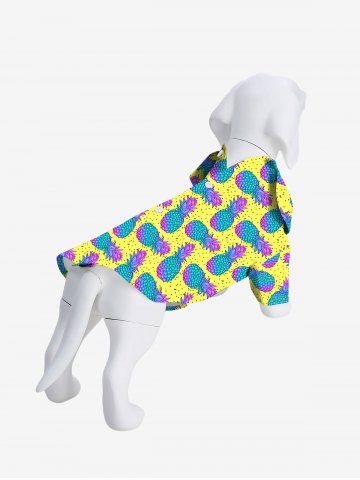Pet's Turn-down Ombre Pineapple Pin Dot Print Hawaii Button Shirt - Yellow - L