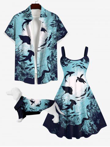 Dog Shirts > Pet's Turtle Shark Seabed Print Hawaii Sea Creatures Button Shirt