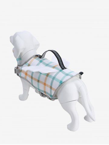 Pet's Plaid Print Push Buckle D-Ring Strap Wings Swimsuit - White - Xs