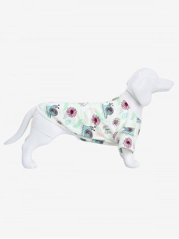 Pet's Snails Butterfly Flowers Print Hawaii Top - WHITE - S