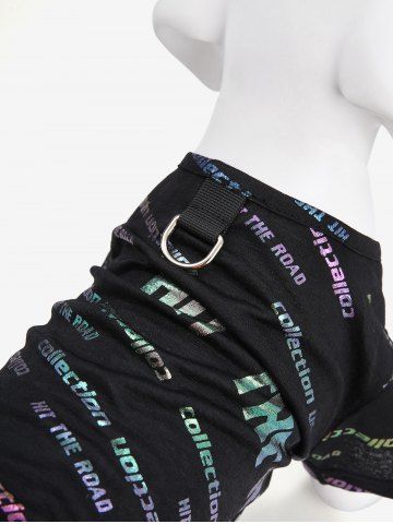Pet's Colorful Ombre Neon Letters Print D-Ring T-shirt - Black - S