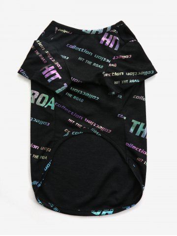 Pet's Colorful Ombre Neon Letters Print D-Ring T-shirt - Black - 2xl
