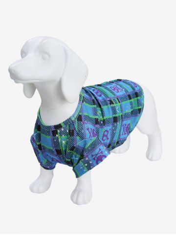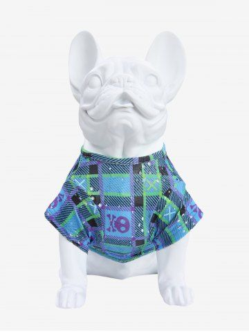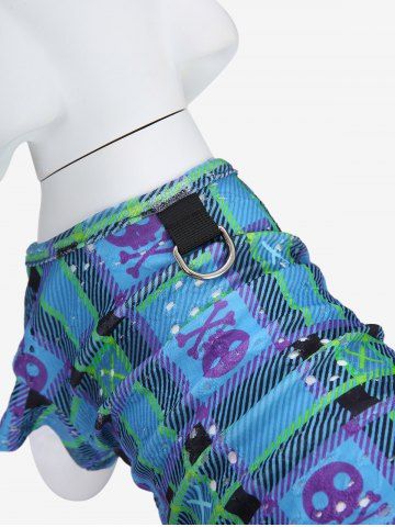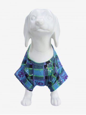 Pet's Plaid Skulls Skeleton Colorblock Print T-shirt - Blue - S