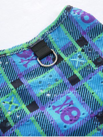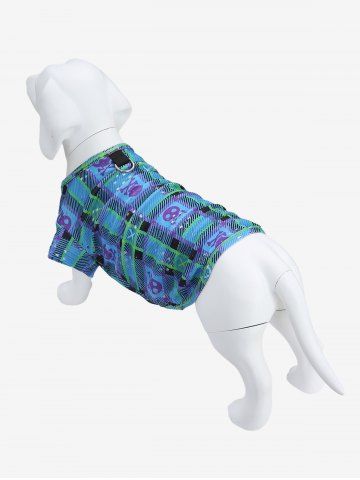Pet's Plaid Skulls Skeleton Colorblock Print T-shirt - Blue - Xl