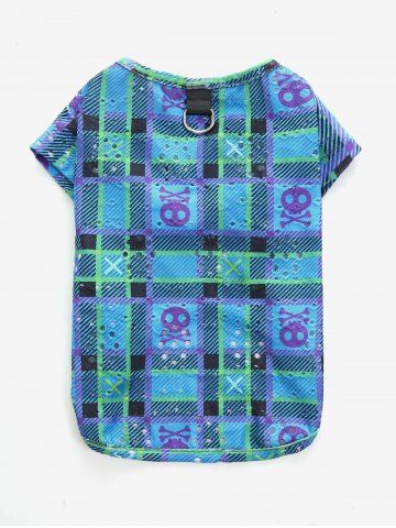 Pet's Plaid Skulls Skeleton Colorblock Print T-shirt - Blue - 2xl