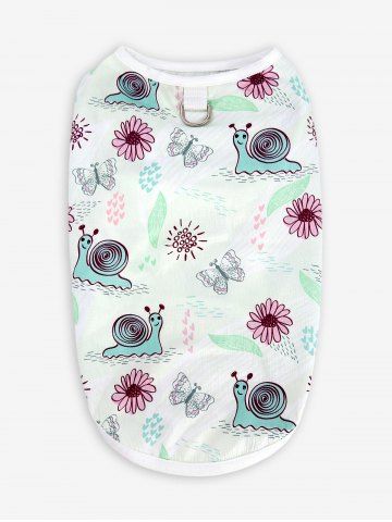 Pet's Snails Butterfly Flowers Print Hawaii Top - White - S