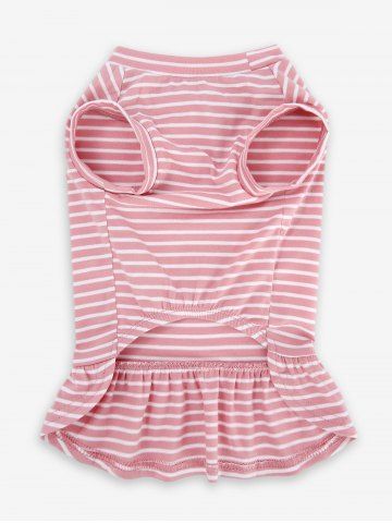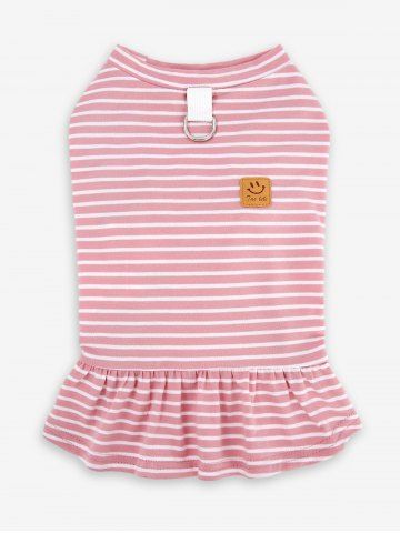 Pet's Striped Print Smile Stickers Ruffles Top - Light Pink - 3xl
