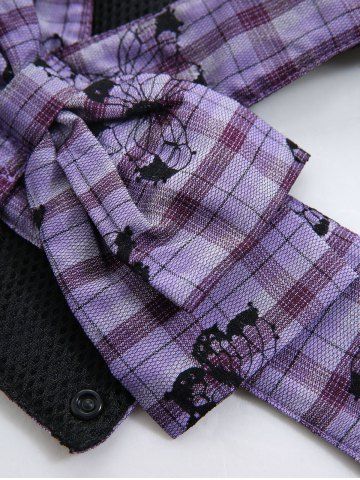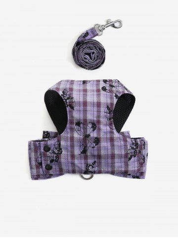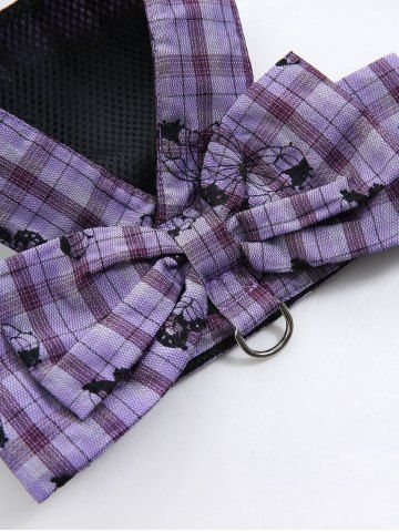 Pet's Butterfly Plaid Print Bowknot Vest with Leash - Purple - M