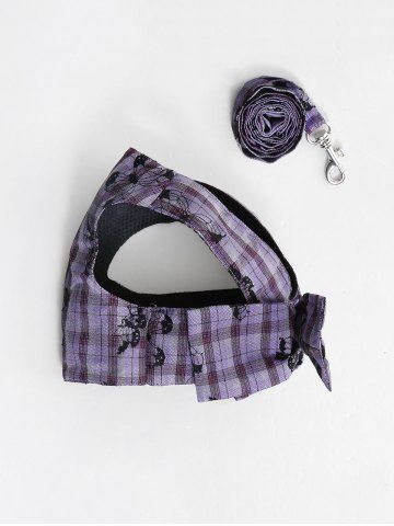 Pet's Butterfly Plaid Print Bowknot Vest with Leash - Purple - 2xl