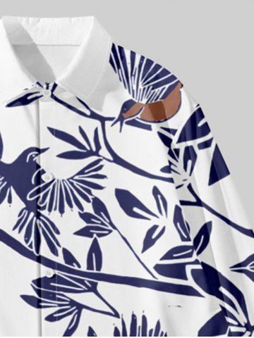 Plus Size Bird Branch Leaf Sea Two Tone Print Hawaii Button Shirt For Men - White - Xl