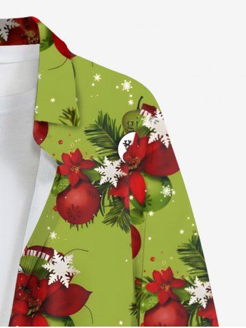 Plus Size Christmas Ball Flowers Snowflake Print Buttons Pocket Shirt For Men - Green - L