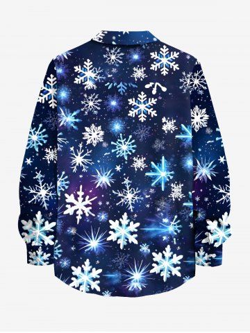 Plus Size Christmas Snowflake Galaxy Print Buttons Pocket Long Sleeves Shirt For Men - Sky Blue - M