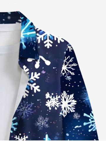 Plus Size Christmas Snowflake Galaxy Print Buttons Pocket Long Sleeves Shirt For Men - Sky Blue - 5xl