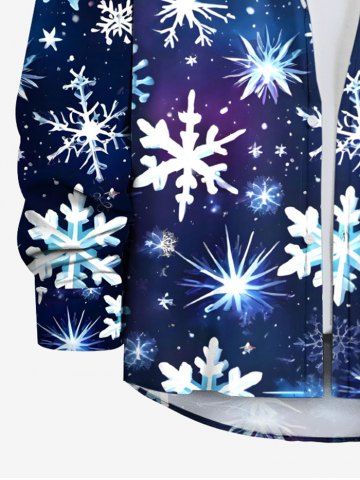 Plus Size Christmas Snowflake Galaxy Print Buttons Pocket Long Sleeves Shirt For Men - Sky Blue - 7xl