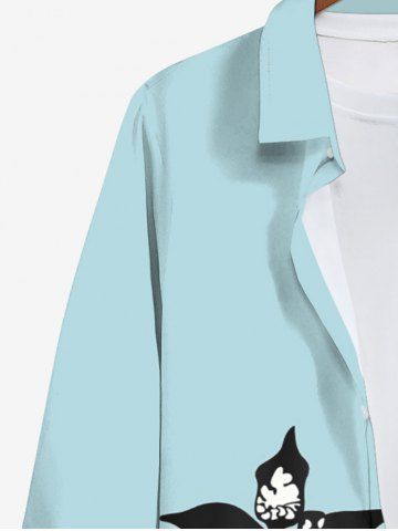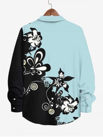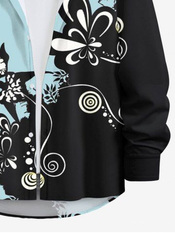 Long Sleeves Shirts > Plus Size Curve Flower Butterfly Colorblock Print Hawaii Button Shirt For Men