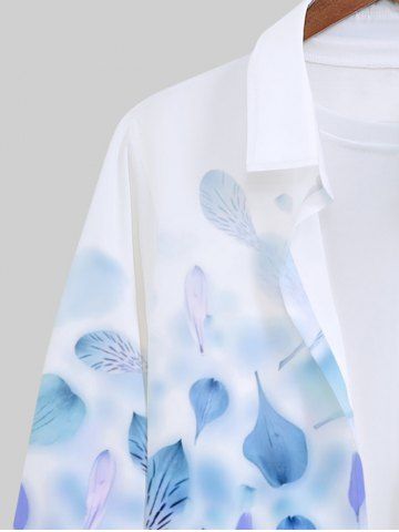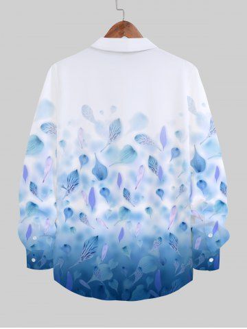 Plus Size Feather Leaf Ombre Colorblock Print Long Sleeve Buttons Hawaii Shirt For Men - White - L
