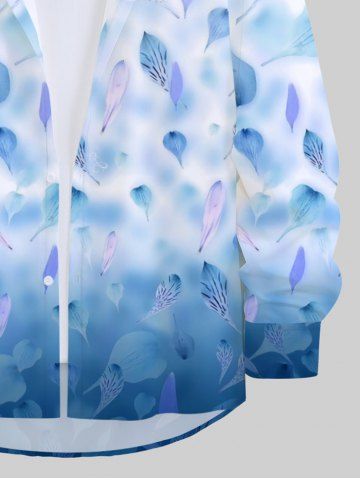 Long Sleeves Shirts > Plus Size Feather Leaf Ombre Colorblock Print Long Sleeve Buttons Hawaii Shirt For Men