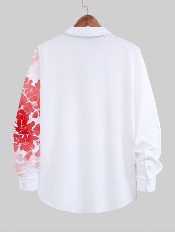 Plus Size Flower Branch Print Hawaii Ombre Buttons Shirt For Men - White - 3xl