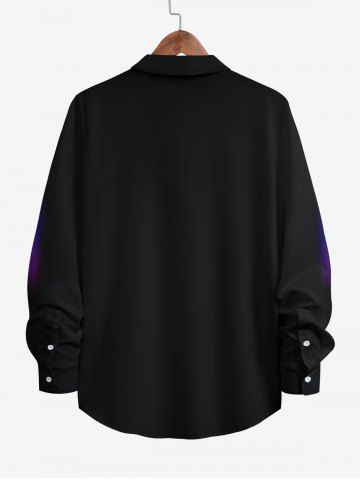 Plus Size Moon Tree Water Fall Ombre Colorblock Glitter 3D Print Buttons Long Sleeves Shirt For Men - Black - 6xl
