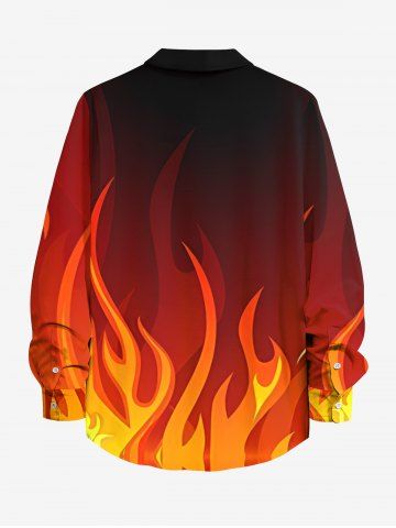 Plus Size Ombre Fire Flame Print Button Long Sleeves Shirt For Men - Deep Red - L