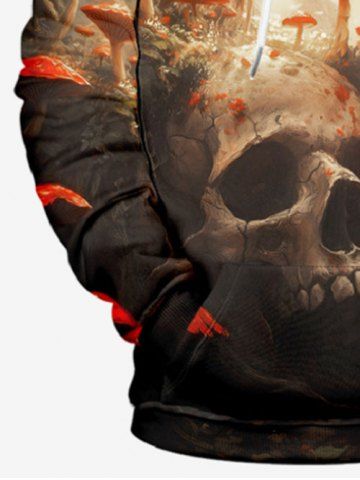 Plus Size Skull Mushroom Sunshine Forest Print Halloween Drawstring Pocket Pullover Hoodie For Men - Black - 5xl