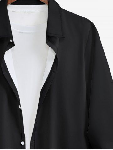 Plus Size Solid Full Buttons Shirt For Men - Black - L