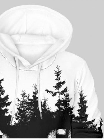 Plus Size Tree Forest Cat Print Halloween Pocket Drawstring Pullover Long Sleeves Hoodie For Men - Black - Xl