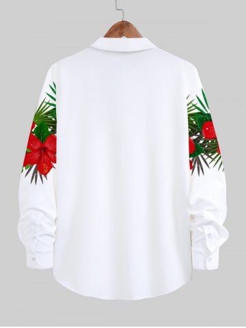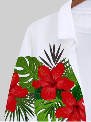 Plus Size Tropical Leaf Hibiscus Flower Print Buttons Long Sleeve Hawaii Shirt For Men - White - 3xl