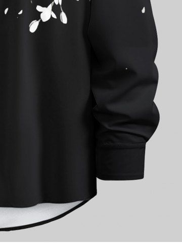 Plus Size Two Tone Flowers Colorblock Print Buttons Long Sleeves Shirt For Men - Black - M