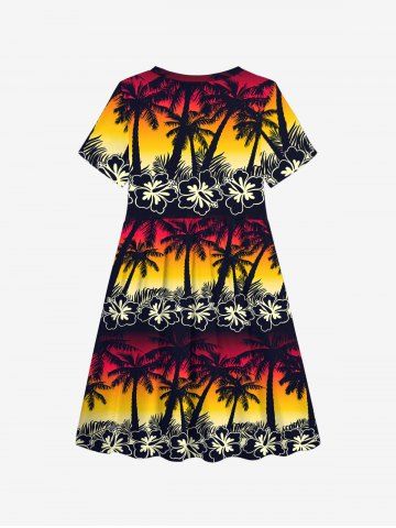 Kid's Coconut Tree Flower Ombre Colorblock Print Dress - Multi-a - 120