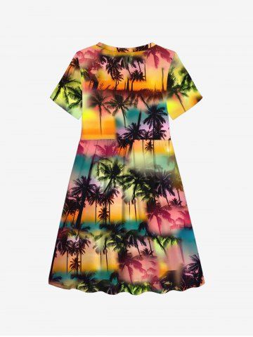 Dresses & Jumpsuits > Kid's Coconut Tree Ombre Colorful Colorblock Print Hawaii Dress