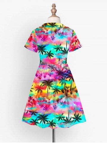 Kid's Coconut Tree Ombre Print Hawaii Button Dress - Purple - 110