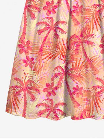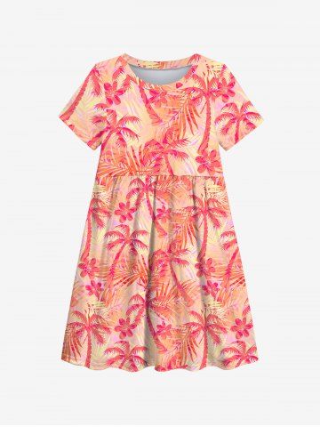 Kid's Coconut Tree Palm Leaf Flower Print Hawaii Dress - Red - 110
