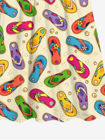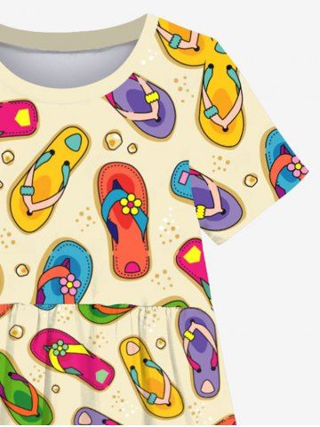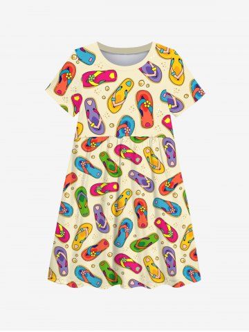 Kid's Coloful Flip-Flops Stones Print Hawaii Dress - Yellow - 140