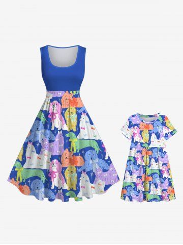Dresses & Jumpsuits > Kid's Colorful Fluffy Dog Stars Print Dress
