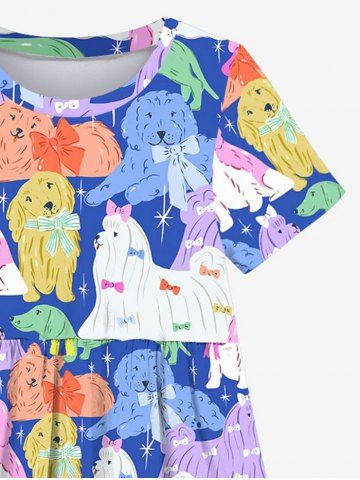 Kid's Colorful Fluffy Dog Stars Print Dress - Multi-a - 150