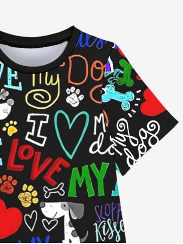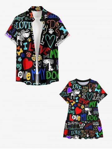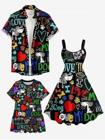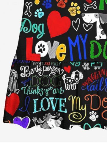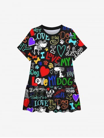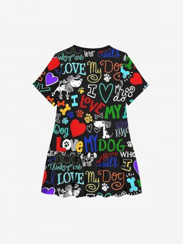 Kid's Colorful Letters Dog Heart Paw Print Hawaii Dress - Black - 150