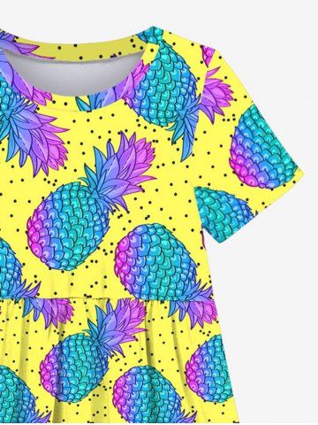 Kid's Colorful Ombre Pineapple Pin Dot Print Hawaii Dress - Yellow - 100