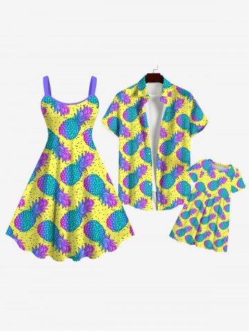 Kid's Colorful Ombre Pineapple Pin Dot Print Hawaii Dress - Yellow - 120