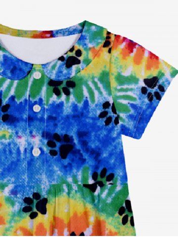 Kid's Colorful Spiral Tie Dye Cat Paw Print Hawaii Button Dress - Multi-a - 120