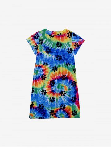 Dresses & Jumpsuits > Kid's Colorful Spiral Tie Dye Cat Paw Print Hawaii Button Dress