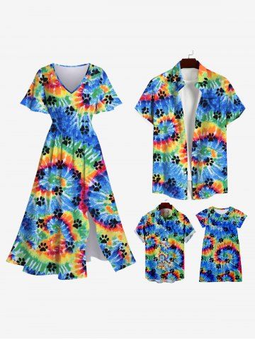 Dresses & Jumpsuits > Kid's Colorful Spiral Tie Dye Cat Paw Print Hawaii Button Dress