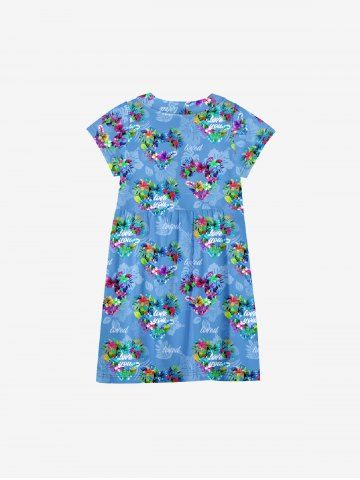 Kid's Flower Heart Letters Print Hawaii Ombre Button Dress - Blue - 150