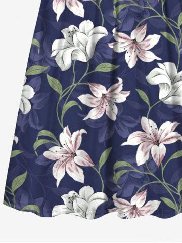 Kid's Flower Leaf Branch Print Hawaii Dress - Cadetblue - 150